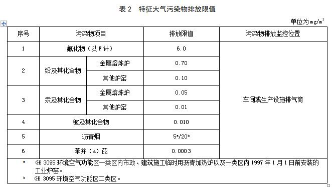 工業(yè)爐窯大氣污染物排放限值按表1、表2規(guī)定執(zhí)行。