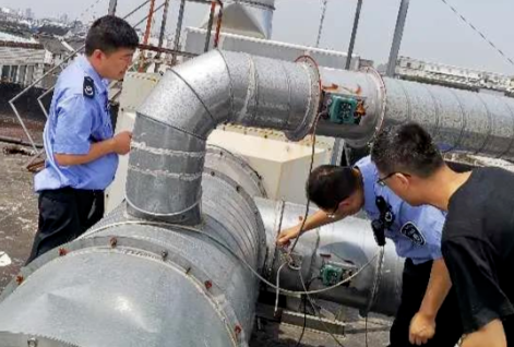 2020年7月,姑蘇生態環境執法局對某涉及含揮發性有機物廢氣產生的企業進行突擊檢查時發現,樓頂的3組廢氣處理設施中,1組并管較多的光氧催化裝置箱體固定螺栓有明顯銹跡。執法人員立即進行現場拆箱檢查,肉眼可見光氧催化裝置燈管上有大量積灰,部分燈管破裂,未做到及時更換和保養。執法人員順著管線繼續檢查發現,兩處管線與樓頂連接部位存在大約8厘米的縫隙,開啟設備后,用手帕紙放在縫隙口測試,結果有明顯漏風現象,管道口原密封水泥脫落。現場判定廢氣處理設施不正常使用。