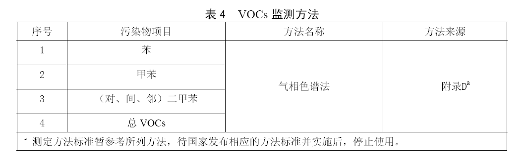 4.4 無(wú)組織排放監(jiān)控點(diǎn)VOCs濃度限值