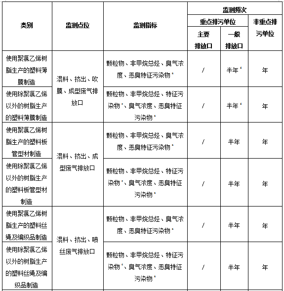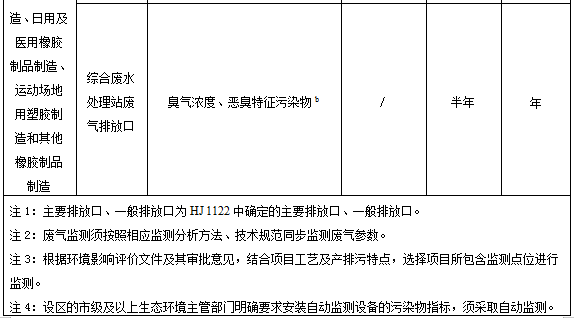 5.2.1.2橡膠制品工業(yè)排污單位有組織廢氣排放監(jiān)測點(diǎn)位、監(jiān)測指標(biāo)及最低監(jiān)測頻次按照表3執(zhí)行。