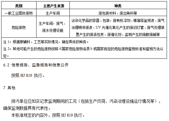 5.5.1 除表1~表6中的監(jiān)測指標(biāo)外,5.5.1.1和5.5.1.2中的污染物指標(biāo)也應(yīng)納入監(jiān)測指標(biāo)范圍,并參照表1~表6和HJ 819確定監(jiān)測頻次。