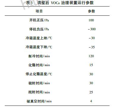 調(diào)整后VOCs 治理裝置主要運行參數(shù)如表3。