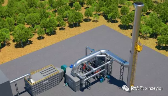 脫附風(fēng)機(jī)取轉(zhuǎn)輪排出凈化氣體一部分與RTO的熱氣做熱交換,溫度達(dá)到150~180℃,對(duì)沸石轉(zhuǎn)輪進(jìn)行脫附再生,脫附下來(lái)的氣體經(jīng)RTO風(fēng)機(jī)抽吸牽引進(jìn)RTO燃燒分解,脫附濃縮后的廢氣在RTO反應(yīng)裝置中被加熱至750℃以上,燃燒成為二氧化碳和水,排放至大氣。