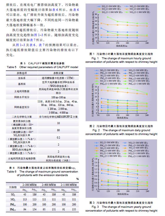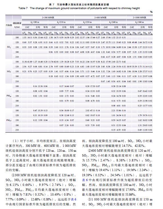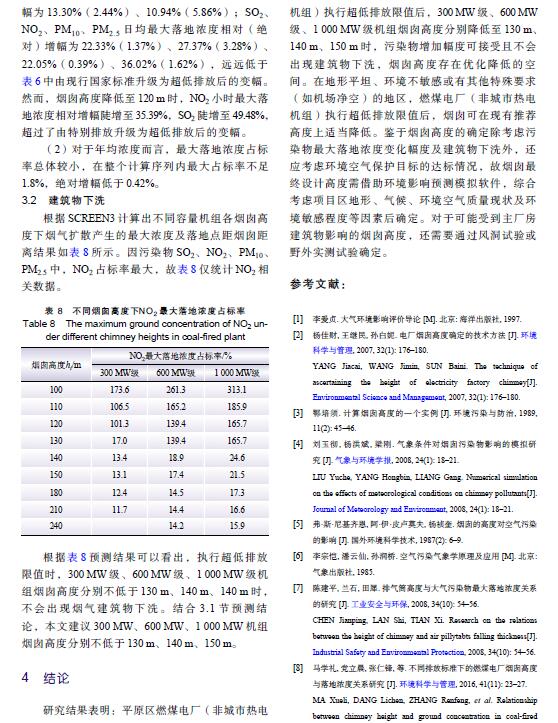 摘 要:燃煤電廠全面實(shí)施超低排放后,煙氣污染物排放水平大幅降低,是否仍需采用高煙囪排放已引起關(guān)注。以平原區(qū)不同容量燃煤電廠為例,對(duì)超低排放水平下煙囪高度與污染物最大落地濃度關(guān)系進(jìn)行研究,并對(duì)特定高度下是否出現(xiàn)建筑物下洗進(jìn)行判定,分析煙囪高度優(yōu)化的可能性。研究結(jié)果表明:平原區(qū)燃煤電廠執(zhí)行超低排放限值后,300 MW、600 MW、1 000 MW級(jí)機(jī)組煙囪從現(xiàn)有推薦高度分別降低至130 m、140 m、150 m時(shí),污染物最大落地濃度增幅不顯著,初步判定污染物增加幅度可接受且不會(huì)出現(xiàn)建筑物下洗,煙囪高度存在優(yōu)化降低的空間。