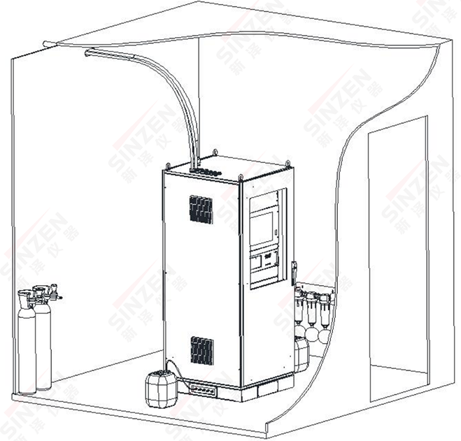 CEMS機(jī)柜四周距離墻壁距離≥0.8m。